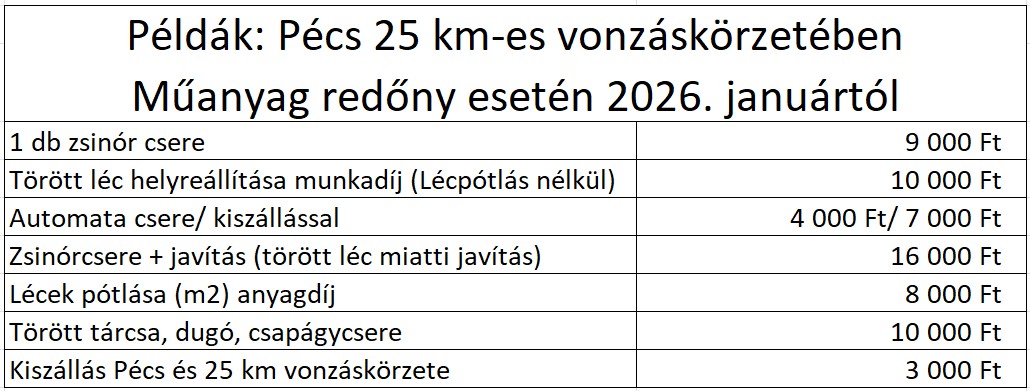 Kiszállással 1db redőny esetén: 12000 Ft, 2 redőny 21000 Ft